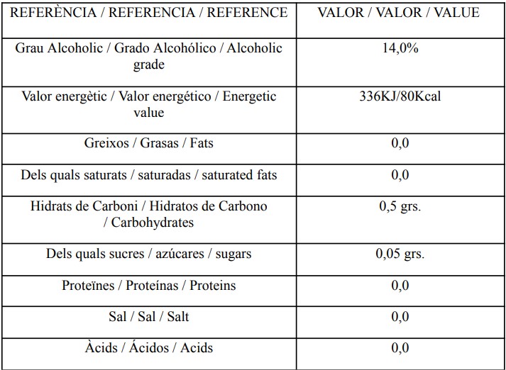 Vino fresco, afrutado, ligero, dulce, con una acidez muy equilibrada. En boca es envolvente, cálido y armonioso. En retronasal, se aprecian los sabores del chocolate persistente con toques de vainilla y frutas silvestres. Temperatura recomendada 14 º.